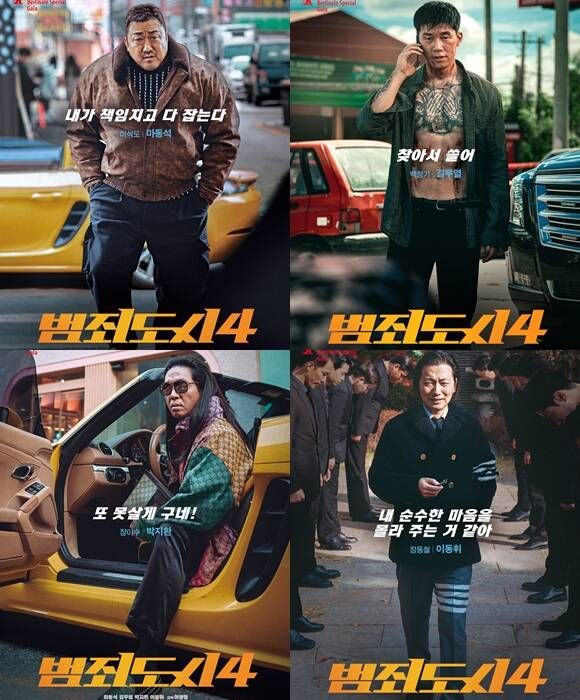 배급사 에이비오엔터테인먼트는 18일 영화 '범죄도시4'(감독 허명행)를 이끌 주요 캐릭터들의 포스터를 공개했다. 사진에는 마동석 김무열 박지환 이동휘가 각기 다른 매력을 발산하고 있다.