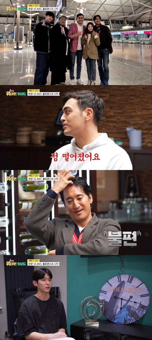 이 가운데 맏형 신현준이 실수를 하고 이에 피터와 티격태격한다. 급기야 피터가 "정떨어졌다!"고 충격 발언을 한 것으로 알려져 본 방송에 궁금증을 더한다. '위대한 가이드'가 첫 예능인 이시우는 형들의 모습을 보고 "정신 못 차리겠다"며 당황스러움을 감추지 못한다.