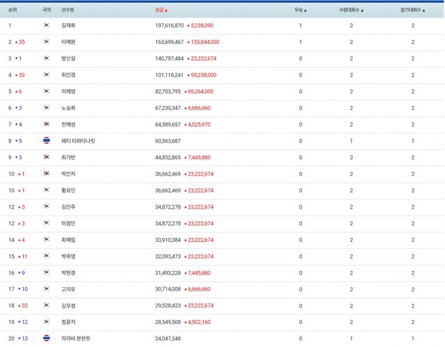 ■상금순위(블루캐니언 레이디스 챔피언십 종료 기준)