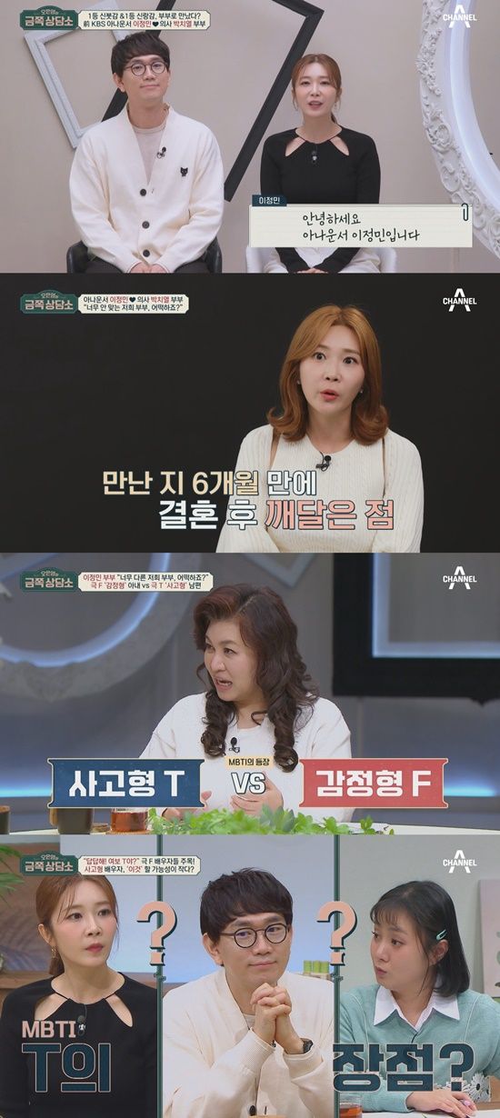 이어 아내 이정민은 사람과의 관계에서 감정을 주고받는 것이 중요한 '감정형'이지만, 남편 박치열은 이성적으로 문제를 해결하는 '사고형'이어서 대화할 때 트러블이 생기는 것 같다고 설명한다.