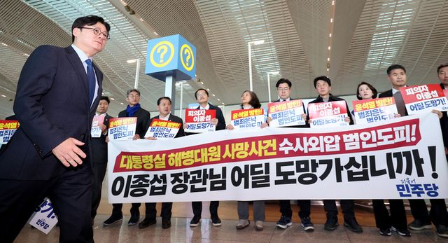 프리미엄 체크인 구역엔 이 대사의 출국 저지를 위해 모인 더불어민주당(이하 민주당) 의원들과 취재진이 대기 중이었으나 이 대사의 출국 모습이 포착되진 않았다. 앞서 이 대사의 출국에 관해 공수처는 출국금지 해제와 관련해 추가 대면 조사가 필요하다는 입장을 밝혔다.