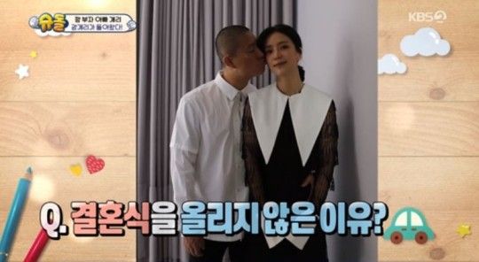 이들 부부는 결혼식 없이 혼인신고만 했다고. 개리는 "아내와 결혼식을 따로 올리지 않았다"며 "혼인신고서에 도장만 짝었다. 예전부터 결혼을 하면 식을 올리지 않을 생각이었고, 아내가 동의해줘서 그렇게 할 수 있었다"고 말했다.