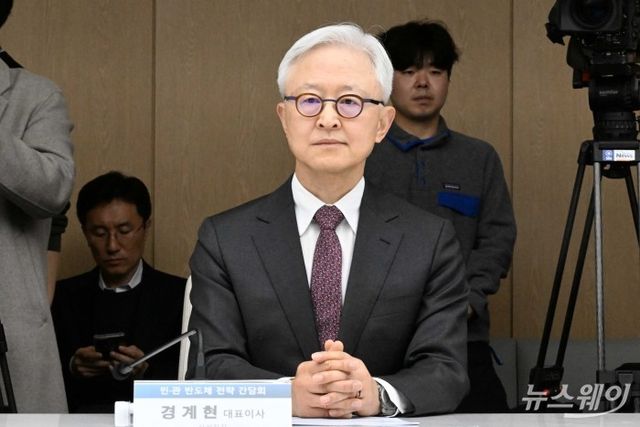 경계현 삼성전자 대표이사가 26일 오전 서울 중구 대한상공회의소에서 열린 민관 반도체 전략 간담회에 참석해 자리하고 있다. 사진=강민석 기자 kms@newsway.co.kr