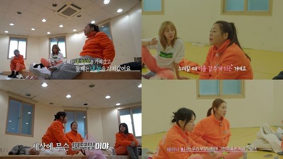 이날 언니들이 도착한 MT 장소는 다름 아닌 유격 훈련장. 알고 보니 이번 MT는 모두의 초심 회복을 위한 ‘멘탈 트레이닝’ 코스였던 것. 여기에 ‘강철부대’ 최영재까지 ‘멘탈 마스터’로 나서자 살벌한 분위기가 조성된다. 예상치 못한 혹독한 훈련에 언니들은 ‘멘붕’이 되고 휴식 시간에 ‘뽀글이 타임’을 가지면서 허기진 배를 채운다. 특히 이영현은 “너무 배가 고팠다”며 ‘뽀글이’ 라면을 두 봉지나 폭풍 흡입하는데 얼마 후 “지금 내가 라면 두 개 먹은 것도 (카메라에) 다 찍힌 거냐?”라고 뒤늦게 ‘현타’를 호소해 웃음을 안긴다. 그런 뒤, “현재 교정기를 착용 중”이라고 돌발 고백하고, 이에 이지혜는 “왜 갑자기 교정을 하냐?”라고 묻는다.