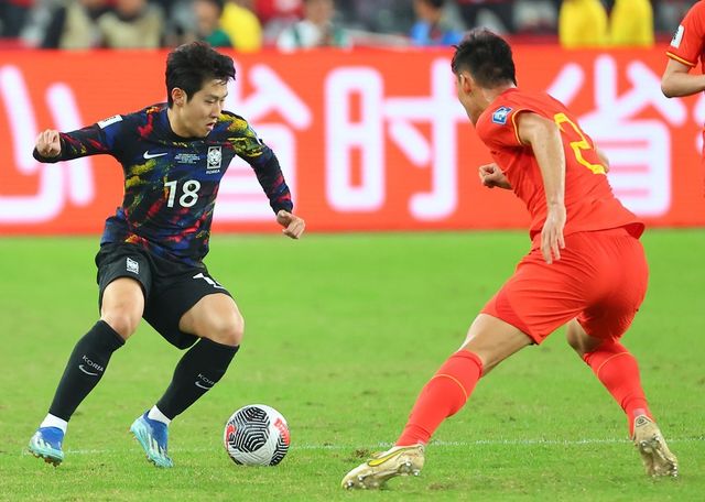 지난해 11월 21일 중국 선전 유니버시아드 스포츠센터에서 열린 2026 북중미 월드컵 아시아 2차 예선 한국과 중국의 경기에서 대표팀 이강인이 중국 수비를 상대로 드리블 돌파를 시도하고 있다. / 연합뉴스