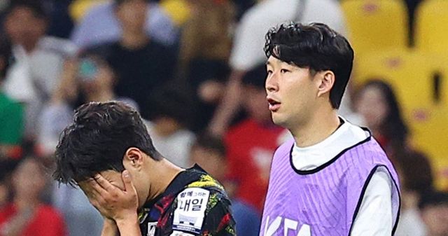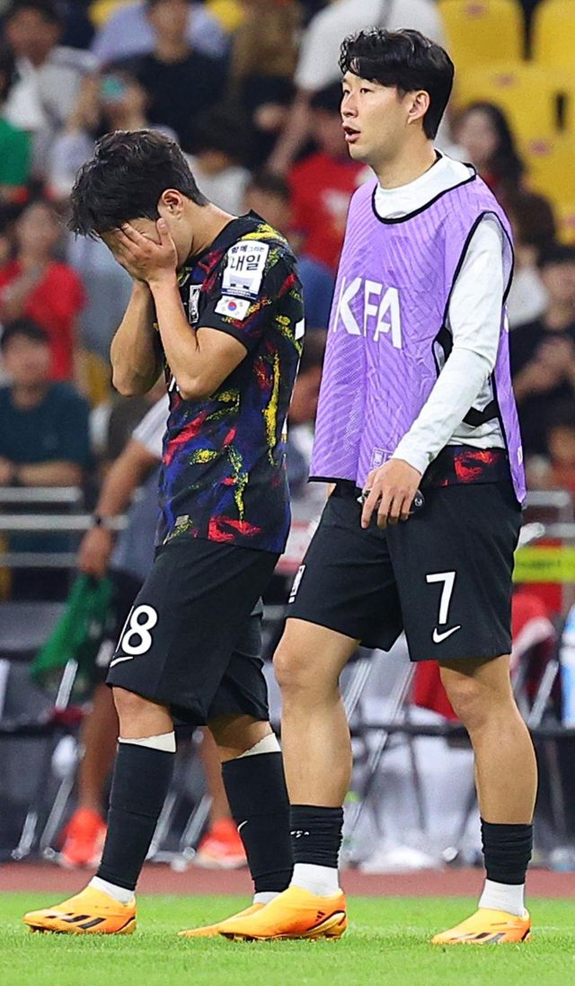 지난해 6월 16일 부산 아시아드주경기장에서 열린 축구 국가대표팀 평가전 대한민국과 페루의 경기에서 1-0으로 패배한 대표팀 이강인과 손흥민이 아쉬워하고 있다. / 연합뉴스