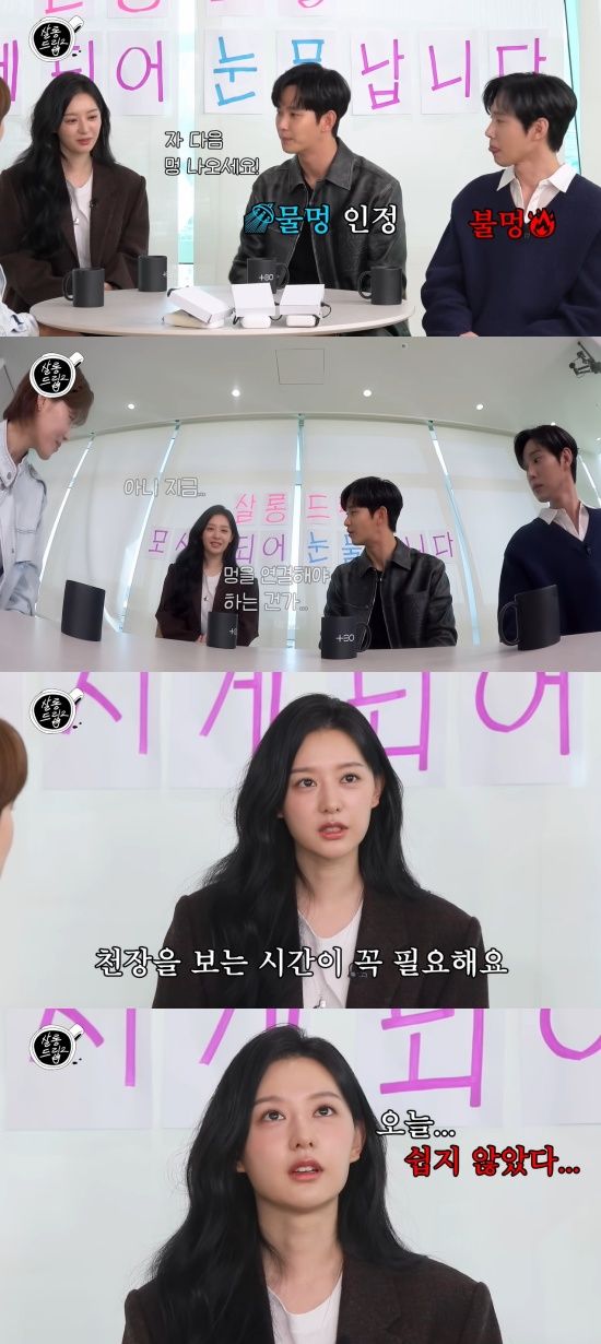 김지원은 잠시 고민하더니 "저는 집에서 소파에 누워서 천장을 보는 시간이 필요하다. 항상 천장을 보면서 '오늘 쉽지 않았다'고 한다"고 털어놨다.