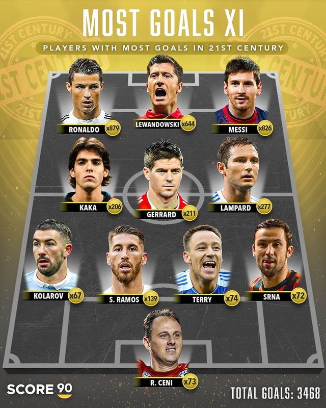 축구 매체 ‘스코어 90’은 19일(이하 한국시간) 공식 SNS를 통해 “21세기에 가장 많은 골을 넣은 선수들이다. 이 선수들은 총 3,468골을 넣었다”라며 최다 득점 베스트11을 공개했다.
