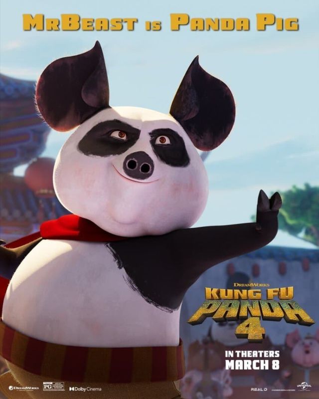 미스터비스트는 다음 달 개봉하는 ‘쿵푸팬더4’에서 판다 피그 역을 맡는다.