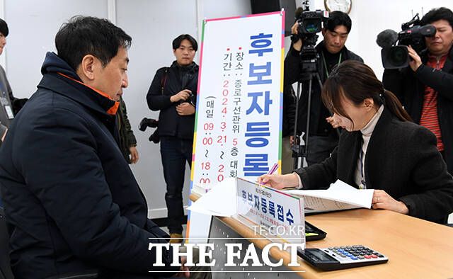 [더팩트ㅣ임영무 기자] 제22대 총선 서울 종로구 출마하는 금태섭 개혁신당 후보가 제22대 국회의원 선거 후보자 등록 첫날인 21일 오전 서울 종로구 서울시선관위원회에서 후보자 등록 서류를 제출하고 있다.