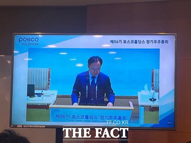 포스코홀딩스는 이날 오전 9시 서울 강남구 포스코센터에서 제56기 정기 주주총회를 열었다. 정기섭 포스코홀딩스 전략기획총괄 사장을 의장으로 한 주주총회에 장 대표 선임안은 전체 의결 가능 주식(7587만6207주)의 43.2% 이상이 참석한 가운데 절반 이상의 찬성표를 받아 가결됐다.