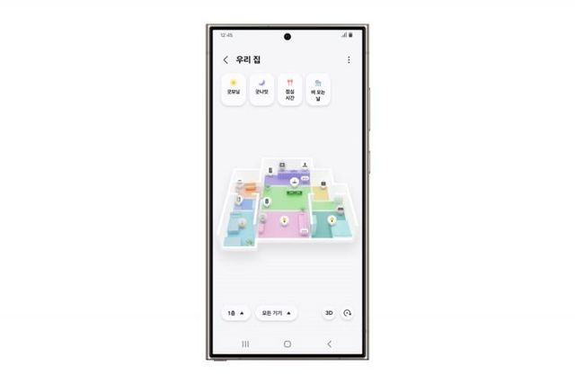 맵뷰는 더 직관적으로 집 구조와 공간별 상황을 인지할 수 있는 3차원 보기 기능도 추가했다. 3D 도면을 보면서 공간별로 스마트싱스 연결 기기의 상태를 확인하고 조명, 온도, 공기질, 에너지 사용량 등을 손쉽게 관리할 수 있게 해준다.