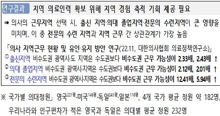 의사의 근무지역 선택 시, 출신 지역·의대 졸업지역·전문의 수련지역이 큰 영향을 미친다는 연구결과도 의미 있게 검토했다.