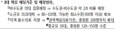 우선 수도권과 비수도권의 의료격차 해소를 위해 비수도권에 약 80%의 정원을 우선 배정했다.