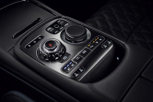 G90 블랙의 내장은 ▲전용 세미 아닐린 시트 커버링 및 퀼팅 ▲리얼 우드 가니쉬 ▲알루미늄 스피커 커버는 물론, ▲노브 및 스위치류 ▲도어 버튼까지 블랙으로 표현해 최고급 모델에 걸맞은 세심함을 더했다.