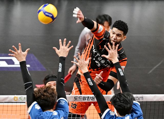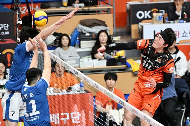 OK금융그룹도 가만히 있지 않았다. 2세트 18-19에서 상대의 연속 범실로 승부를 뒤집었고, 바야르사이한이 1점을 더 보탰다. 이후 23-22에서 레오의 퀵오픈으로 세트 포인트를 가져온 OK금융그룹은 아흐메드의 범실로 2세트를 매듭지었다.