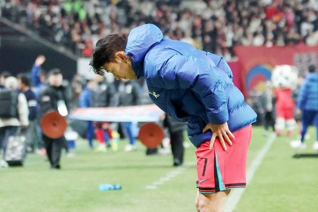 21일 오후 서울 마포구 서울월드컵경기장에서 열린 2026 북중미 월드컵 아시아지역 2차예선 C조 조별리그 3차전 대한민국과 태국과의 경기가 1대1 동점으로 끝난 뒤 대한민국 손흥민이 관중들을 향해 인사하고 있다. / 뉴스1