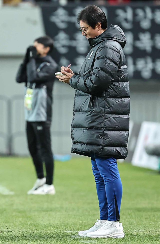 메모하는 황선홍 감독. / 뉴스1