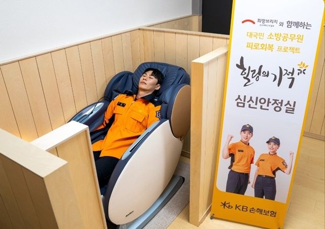 KB손보는 119안전센터에 사용할 수 없거나 활용도가 낮은 공간을 쾌적하고 편안한 환경으로 리모델링하고 소방공무원들이 언제든 이용할 수 있는 안마의자, 침대형 안마기, 소파, 공기정화식물 등을 지원하고 있다.