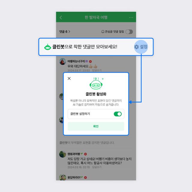 네이버 관계자는 “카페 사용자들이 안전한 환경에서 서비스를 이용하고 카페 멤버들과 안전하게 소통할 수 있도록 댓글 영역에도 클린봇을 적용했다”며 “클린봇 기술을 지속적으로 고도화해 네이버 서비스 내 적용 범위를 확대할 계획”이라고 말했다.