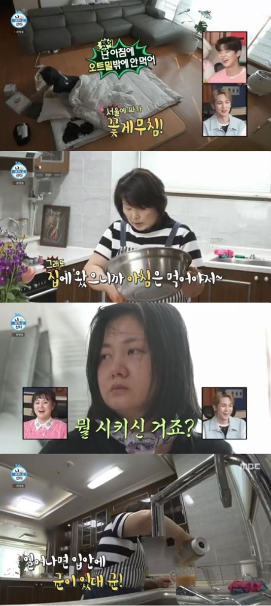 박나래는 어머니가 아침 식사 메뉴로 꽃게무침을 준비하는 것을 보더니 밥을 안 먹는다고 했다. 박나래 어머니는 딸의 건강 회복을 위해 고향집에 왔으니 먹어야 한다며 요리를 멈추지 않았다.