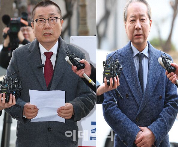 박명하 대한의사협회 비상대책위원회 조직강화위원장(왼쪽)과 주수호 의협 비대위 언론홍보위원장.(사진=연합뉴스)