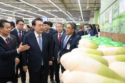 직전에 윤 대통령이 “여기 하나로마트는 이렇게 하는데 다른 데는 이렇게 싸게 사기 어려울 것 아닌가”라고 먼저 말했다는 것이다.