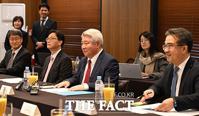 이동통신 3사가 번호이동 전환지원금을 30만~33만원으로 상향 조정했다. 김홍일(오른쪽 두 번째) 방통위원장이 22일 서울 중구 프레스센터에서 열린 통신사·단말기 제조사 간담회에서 발언하고 있다. /사진공동취재단