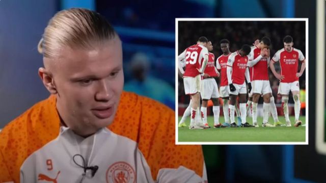 ‘괴물’ 엘링 홀란(맨체스터 시티)이 경쟁 팀 아스널 선수에게 엄지를 세웠다.
