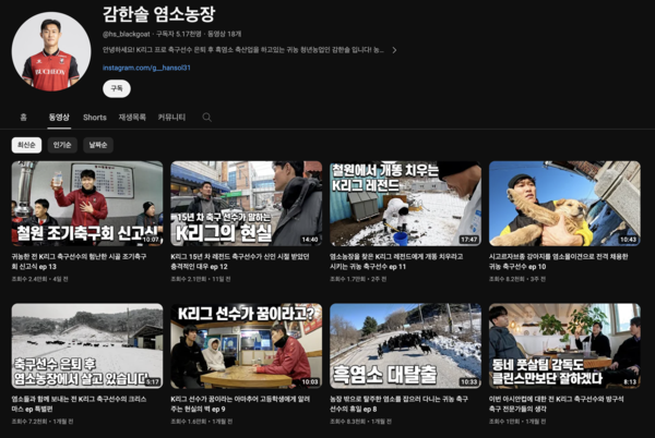 감한솔은 귀농과 함께 유튜브를 시작했다. 원래도 카메라에 들이대는 걸 좋아하는 성격이라 구단 유튜브에서도 자주 모습을 드러냈다. 그럼에도 실제 귀농 브이로그를 찍는 것에 대해 고민이 많았는데, 당시 부천 동료이자 ‘우즈벡 용병’으로 유튜브에서 이름을 날린 김보용이 많은 도움을 줬다.