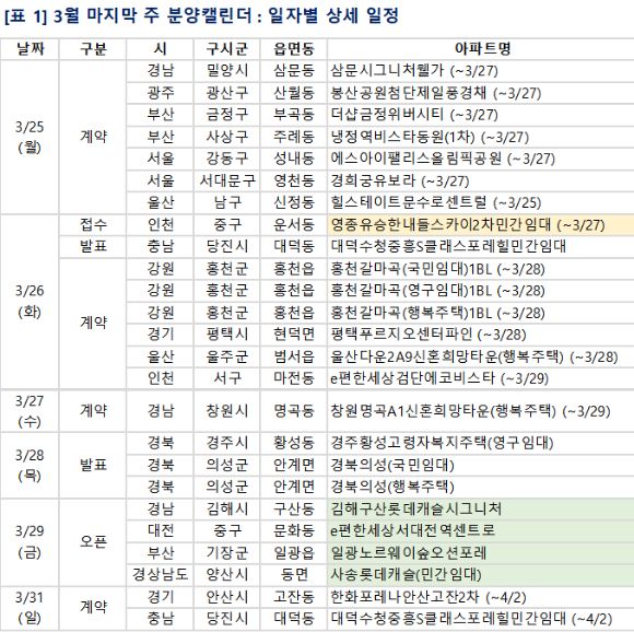 3월 마지막주 분양 일정 [사진=부동산R114]