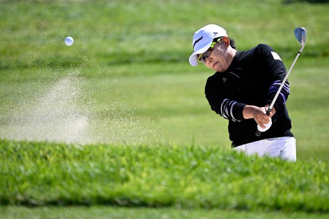 신지애가 24일 열린 LPGA 투어 퍼 힐스 박세리 챔피언십 3라운드에서 벙커 샷을 하고 있다.(사진=AFPBBNews)