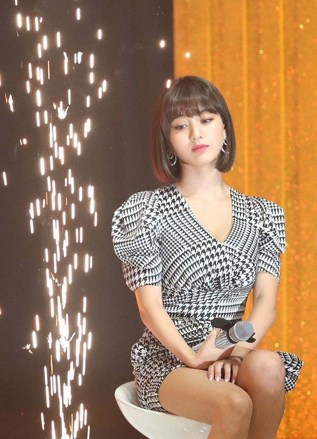 걸그룹 트와이스(TWICE) 지효가 2019년 9월 23일 서울 광진구 YES24 라이브 홀에서 열린 미니 8집 'Feel Special' 발매 기념 시사회에 참석해 부상으로 인해 의자에 앉아 있다. / 뉴스1