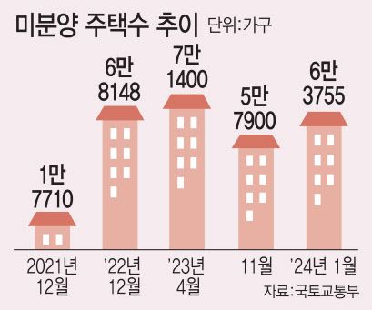 상황이 이렇다 보니 사실상 미분양 대책이 시장에 적용된 적이 없다. 그동안 미분양 상황은 우려할만한 수준으로 빠르게 늘고 있다. 국토교통부 통계에 따르면 1월 전국 미분양 주택은 6만3755가구로 집계됐다. 작년 12월(6만2489가구) 대비 2%(1266가구) 늘어나며 두 달 연속 증가세를 보였다.최근 지방에서 분양 참패 소식이 잇따르고 있어 7만 가구 도달을 시간문제라는 우려가 나온다.