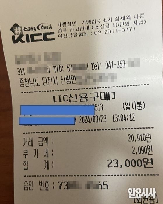 실제로 이날 <일요시사>가 입수한 신용카드 결제내역에는 거래 금액에 2만910원, 부가세가 2090원으로 2만3000원이 찍혀 있다. 원래 결제돼야 할 금액은 칼국수 2인분 2만원에, 공기밥 1000원으로 2만1000원이었으나 이른바 상차림비 명목으로 음식점서 2000원을 부가세로 따로 결제한 셈이다.