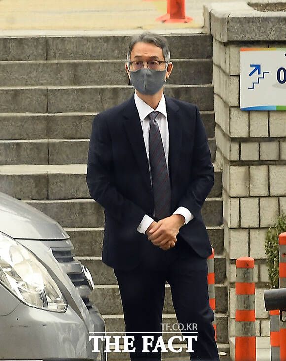 [더팩트ㅣ이동률 기자] 협력업체로부터 부정한 청탁을 받고 8억 원 대 금품을 수수한 혐의를 받는 서정식 전 현대오토에버 대표가 25일 오전 서울 서초구 서울중앙지방법원에서 열린 영장실질심사에 출석하고 있다.