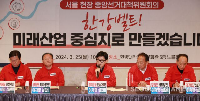 기획재정부 장관 겸 경제부총리를 지낸 추경호 당 민생경제특위 공동위원장은 이날 한양대에서 열린 선대위 회의에서 "현 정부와 미래 세대에 엄청난 빚더미를 물려준 민주당이 또 총선을 앞두고 무책임한 현금 살포 선심 공약으로 매표 행위에 나섰다"고 공격했다.