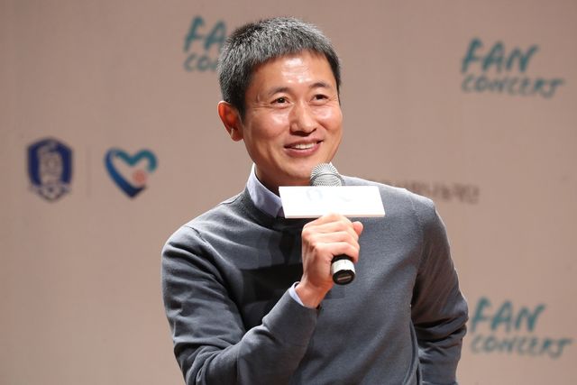 2019년 12월 20일 오후 서울 광화문 교보생명에서 열린 대한축구협회 축구사랑나눔재단 '축구로 나누는 우리 팬 콘서트'에서 이영표 축구사랑나눔재단 이영표 이사가 토크를 하고 있다. / 연합뉴스