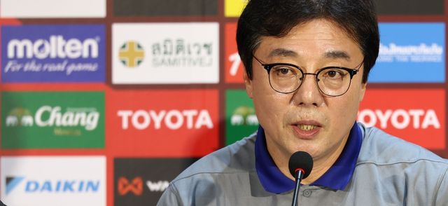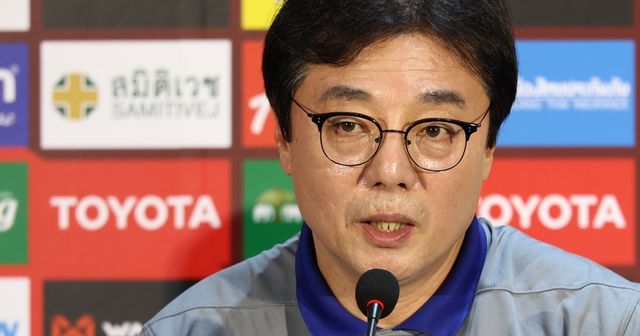 황선홍 한국 축구대표팀 임시 감독이 25일 태국 방콕 라자망갈라 스타디움에서 열린 2026 북중미 월드컵 아시아 지역 2차 예선 C조 4차전 한국-태국전 공식 기자회견에서 취재진 질문에 답하고 있다. / 연합뉴스