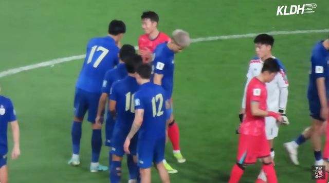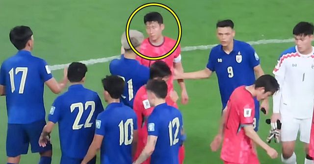 홈 경기장에서 한국에 0-3으로 완패한 태국 선수들은 종료 휘슬이 울리자 허탈함을 감추지 못했다. 경기장 중앙에서 한국 선수들과 인사를 나눈 태국 선수들은 마지막으로 대표팀 주장 손흥민에게 몰려갔다.