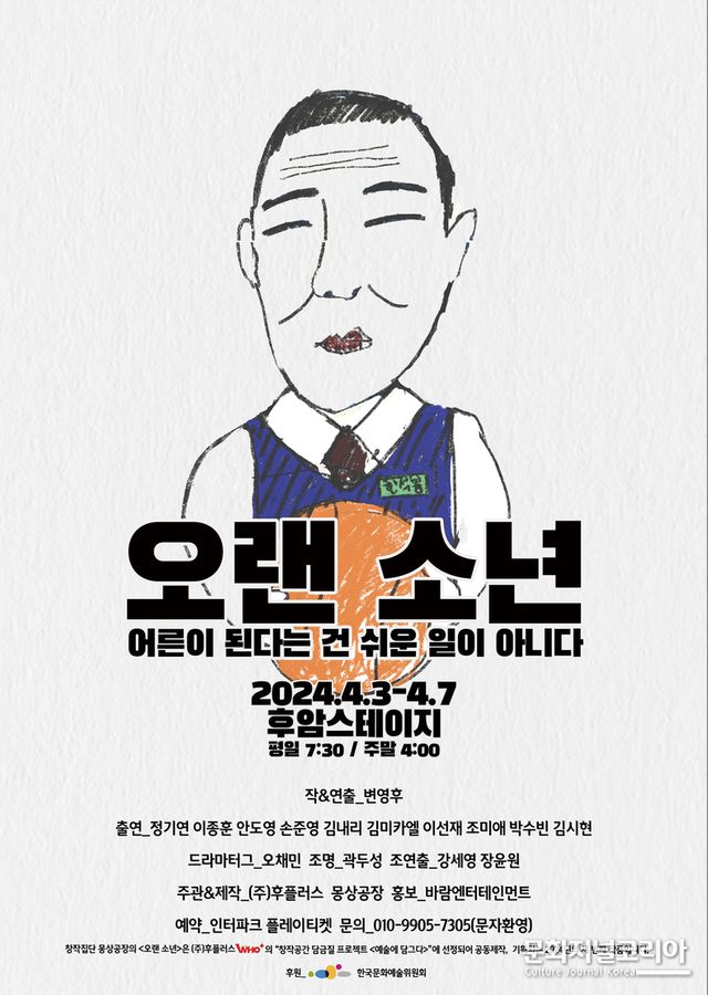 문화저널코리아 김영일 기자 | 봄날을 여는 4월, 재기발랄한 상상력의 코믹 감동 드라마가 무대에 오른다. 창작집단 몽상공장과 ㈜후플러스가 함께 제작한 <오랜 소년>이 바로 그 주인공이다.