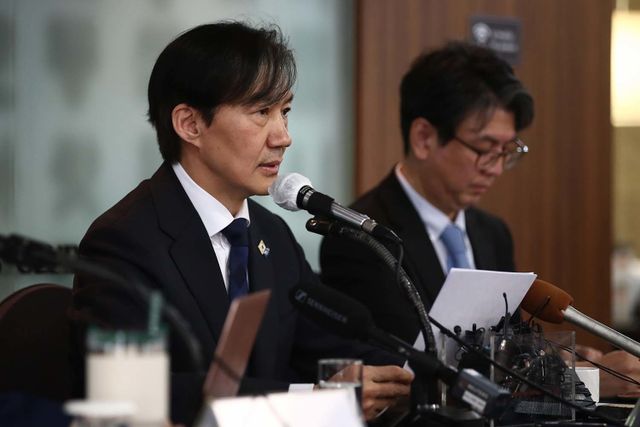 조국 조국혁신당 대표가 27일 오후 서울 중구 한국프레스센터에서 외신 기자회견을 하고 있다. / 뉴스1
