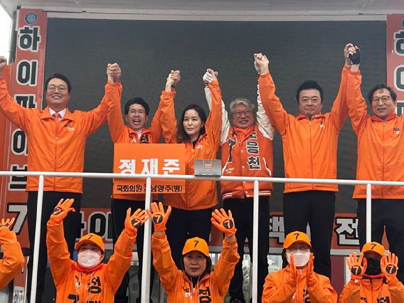 이어 "정재준 후보가 남양주병에서 우리 조응천 후보님과 함께 엄청난 파란을 만들어줄 거라고 저희는 확신하고 있다"고 덧붙였다.