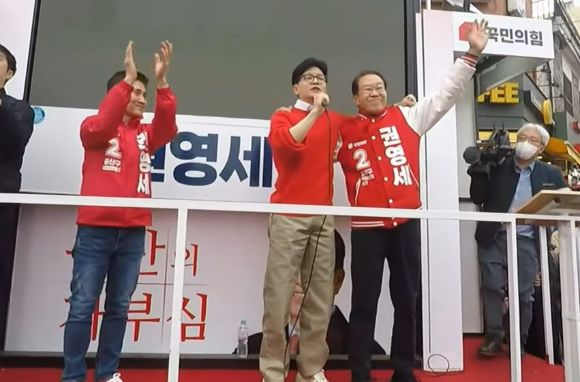 한 위원장은 이날 오전 서울 가락시장(송파구), 망원역(마포구), 신촌(서대문구)에 이은 용산구 용문시장사거리 지원 유세에서 "저는 출마하지 않지만 권영세를 통해서 출마한다. 권영세를 선택해 달라. 저를 선택해 주시는 것과 똑같다"고 말했다.