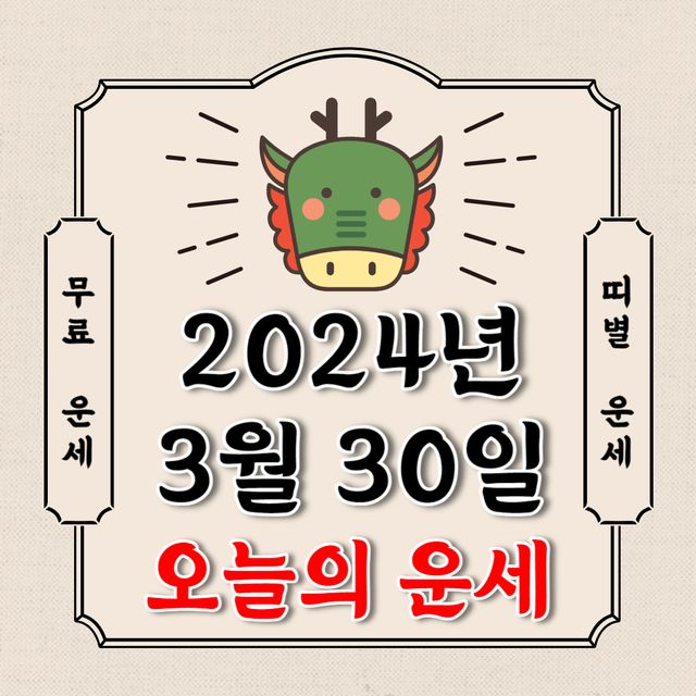 오늘의 운세 2024년 3월 30일 토요일 (음력 2월 21일 / 띠별 운세 / 생년월일 운세)에 대해 알아 보겠습니다.