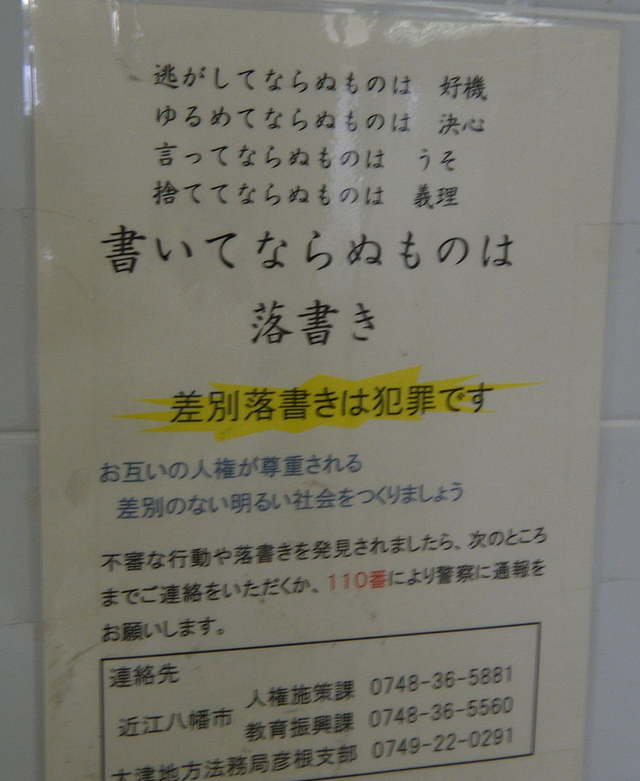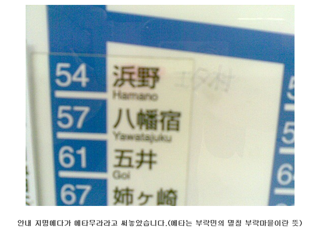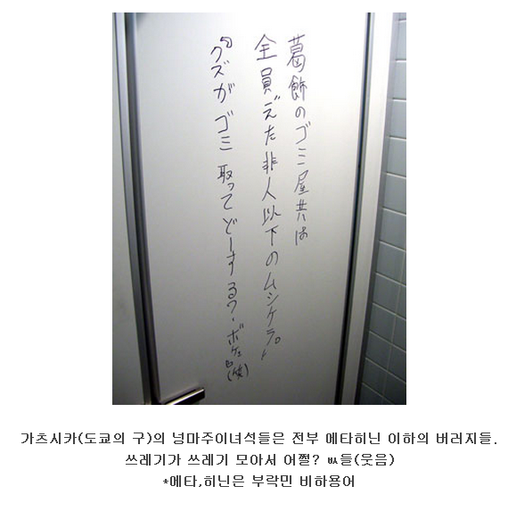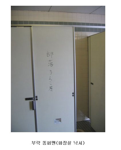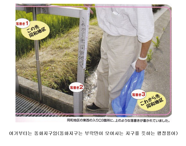아래는 일본 내에서 쉽게 볼 수 있는 부라쿠민 차별 사진들