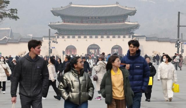 首尔光化门广场前的外国游客。【图片提供 韩联社】