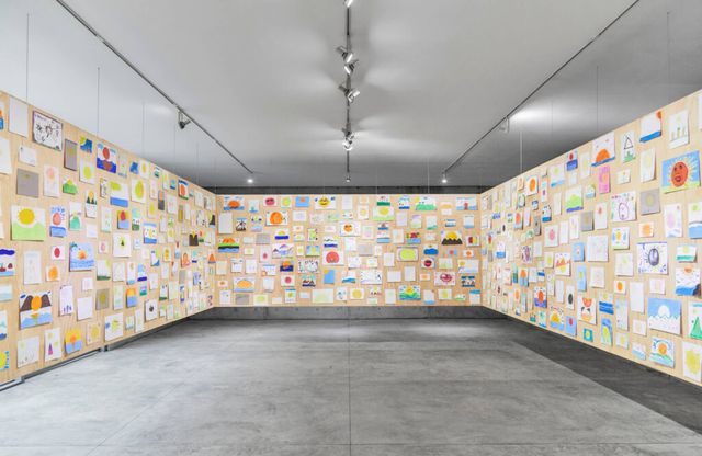 우고 론디노네의 삶의 순환에 대한 사유는 <너의 나이, 나의 나이, 그리고 태양의 나이(your age and my age and the age of the sun)>(2013-현재)와 <나의 나이, 너의 나이, 그리고 달의 나이(your age and my age and the age of the moon)>(2020-현재)에서 이어집니다. 미술관 1층과 2층에 위치한 두 작품은 각각 ‘태양’과 ‘달’을 상징하며 화음과 불협화음 속에 함께 대칭하고 있습니다. 이 작품은 우고 론디노네의 진행형 프로젝트로 그의 전시가 개최되는 지역의 어린이(3-12세)들을 초대하여 이들이 그린 드로잉으로 완성되는 참여 작품이기도 하죠. 매 전시마다 시간의 흐름에 따라 진화하는 형태로 진행되며 이번 뮤지엄 산에서 선보이는 작품은 원주시에 거주하는 1,000여 명의 어린이들이 그린 약 2,000장의 드로잉으로 구성되었습니다.