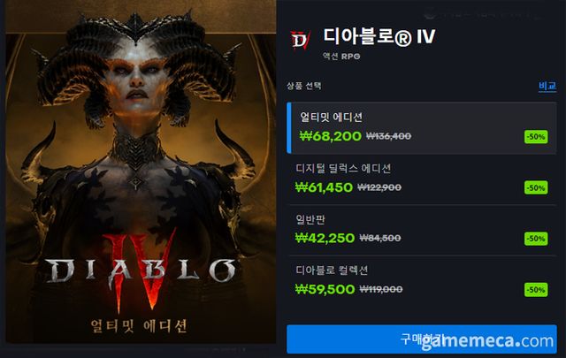 ▲ 디아블로 4 할인 판매 제품결 가격 (자료출처: 배틀넷 공식 페이지)