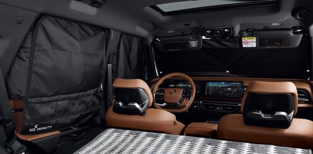 이 밖에 다양한 화물을 적재할 수 있는 루프 플랫 캐리어(80만원)과 이를 보다 쉽게 사용하게 해주는 루프 클라이밍 핸들(30만원), 아웃도어 워터탱크와 휴대용 멀티 에어 컴프레서 구성의 레저 패키지(28만원) 등 차박에 최적화된 제품도 구매 가능하다.